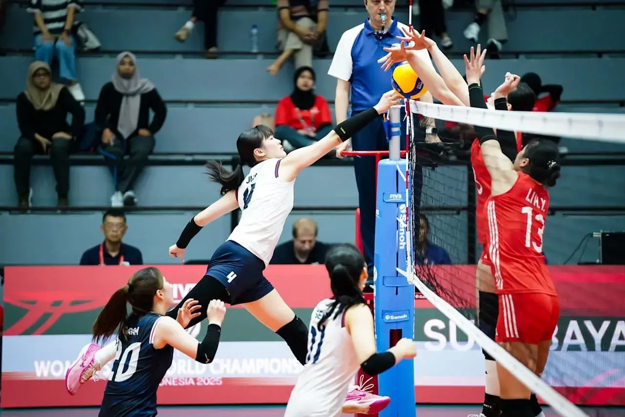 最终中国女排3:0横扫了韩国女排,取得了两连胜,三局比分分别是25:21、25:20、25:17,在小组前四名出线的情况下,中国女排基本已经确定出线,这场比赛我们的首发阵容是主攻赵喆熙、李晨萱,接应单兰沣,二传吴佳慧 ,副攻单琳倩、李涵宇,自由人孙婉鋆,首发主攻上由于昨天王奥芊表现不好,和队友的配合时间比较短,所以这场被单琳倩替代。第一局4:7落后 ,叫了第一次暂停,暂停回来又连丢2分,二传换成了朱航霆,赵喆熙拦网得分以后,中国女排12:11第一次反超对手,第一局扣球失误比较多。