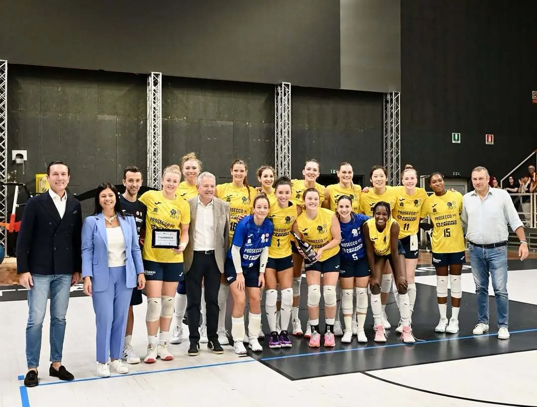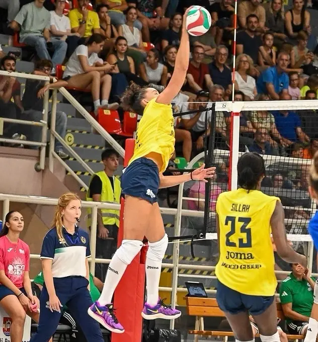 在朱婷加入球队以后,俱乐部已经打了两场比赛,第一场她们3:2战胜了塔尔马森斯女排,这是一场热身赛,所以打满五局对于双方都有好处,也达到了热身的目的。第二场比赛是北京时间昨天凌晨举行的首届波代诺内市锦标赛,也是城市四强赛,她们轻松的横扫了马切拉塔女排,晋级到了决赛,朱婷这两场比赛分别拿到了6分和11分,她们决赛的对手是淘汰了瓦莱福利亚女排的帕纳辛奈科斯女排。在今天的凌晨,两队进行了冠军的争夺,这也是朱婷冲击新赛季首冠。