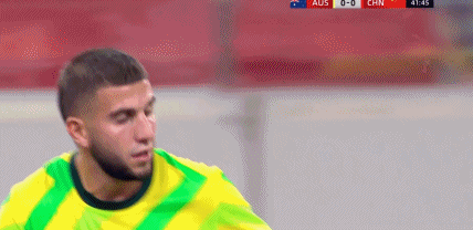 第2分钟,澳大利亚解围失误,拜合拉木分球失误,错失反击机会。