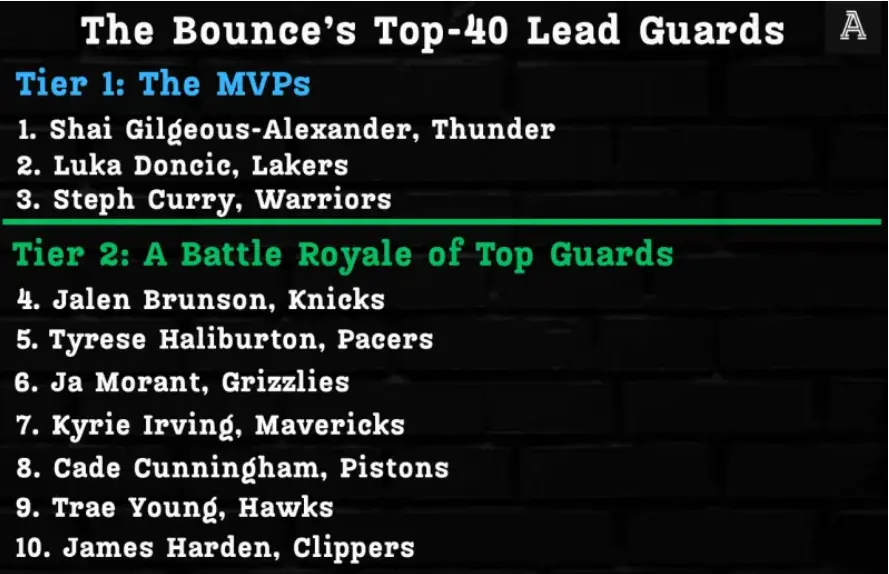 美媒TA公布了25-26赛季联盟前40控卫,亚历山大第一,东契奇第二,库里第三,布伦森第四,哈利伯顿第五,很明显外界是非常认可东皇的硬实力。