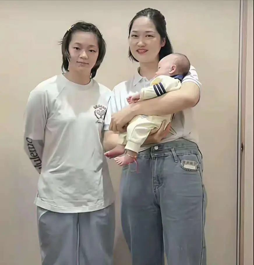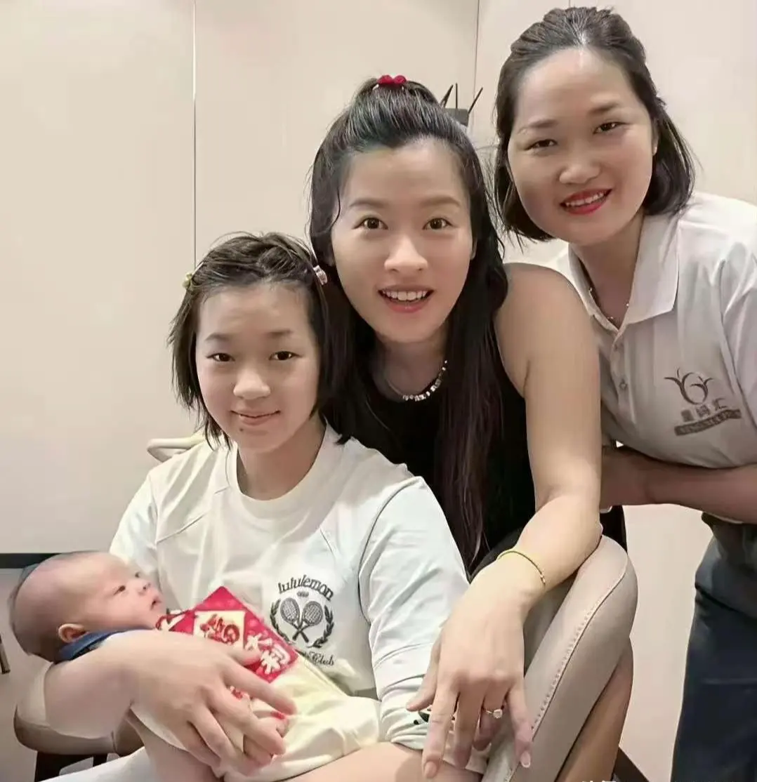 是一米跳板的冠军,照片里全红婵抱着小孩子跟师兄一起拍照片,那画面看起来特别温馨,你别说她抱孩子的姿势还挺标准。