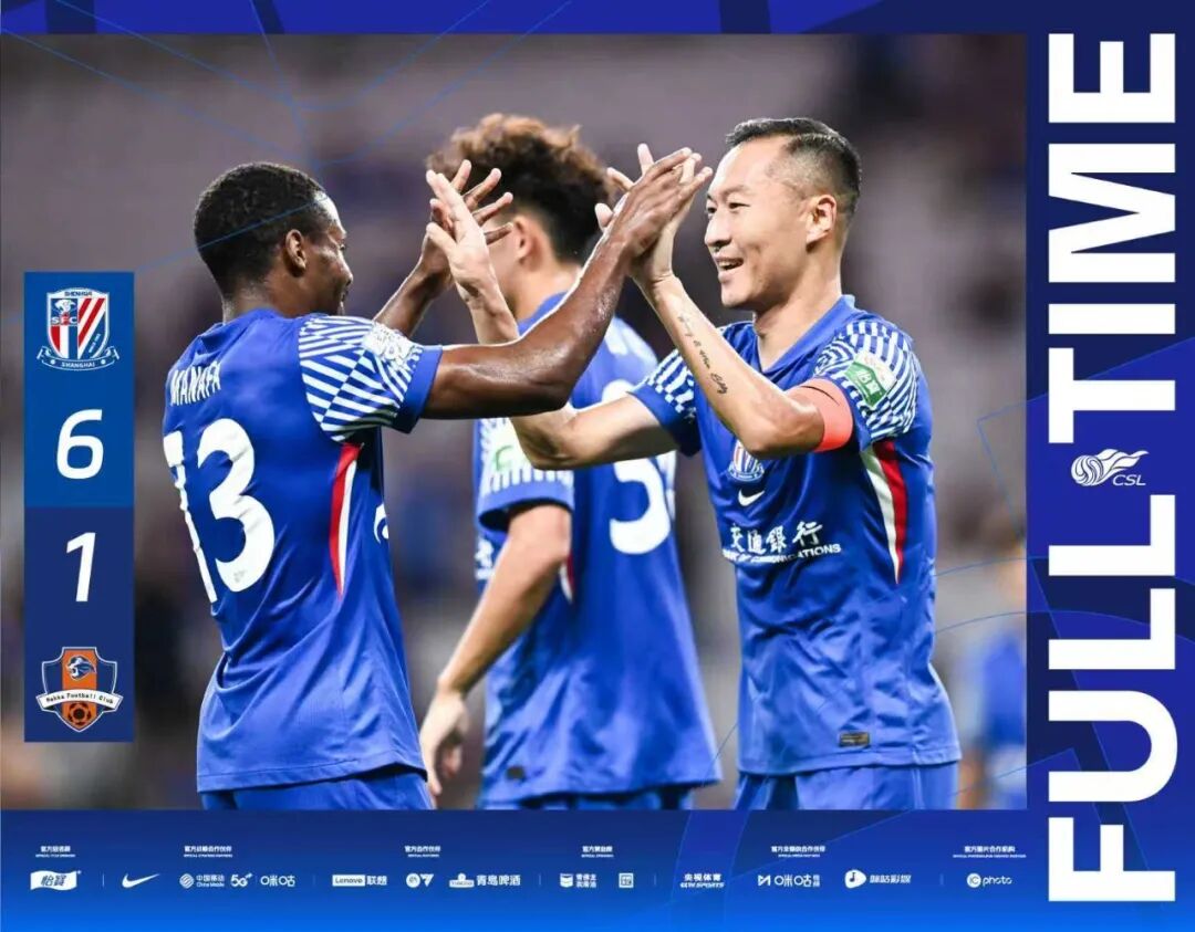 这一轮面对梅州客家,申花终于没有重蹈此前对阵深圳新鹏城、武汉三镇的覆辙,最终6比1拿下比赛的胜利。申花是6粒进球来自于5名队员,分别是阿苏埃、吴曦、刘诚宇、杨泽翔和杨皓宇,其中吴曦是梅开二度。