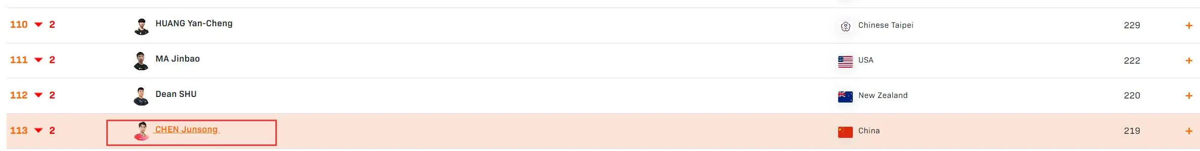陈俊菘今年20岁,来自福建厦门13岁时进入福建省队,2023年他在U19世青赛上拿到男双/混双两个冠军,男单项目他是亚军,实际上他是从2025年开始才进入国乒二队开启了自己的WTT征程,他的积分只有219分而已。