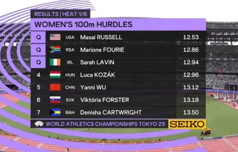 在北京时间9月14日结束的世锦赛女子100米栏预赛中,唯一参赛的中国选手吴艳妮首秀跑出13秒12的成绩,排名小组第5,遗憾止步预赛。