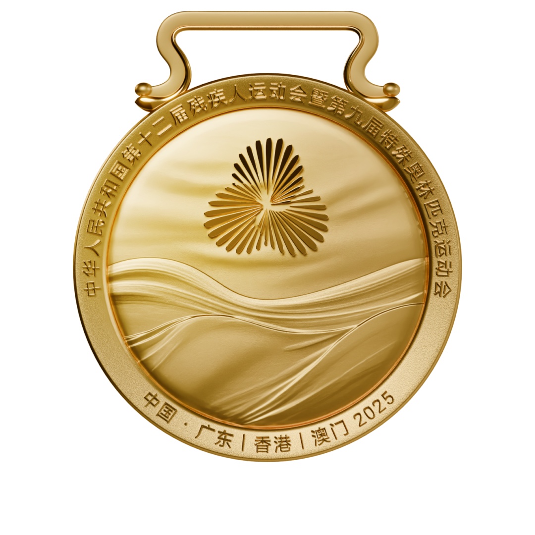 奖牌正面,精心镌刻的连绵海浪纹,象征着大海的广阔与包容,传递着残特奥会汇聚万众一心、众志成城的力量,更代表着运动员们破浪前行、永不言弃的意志与激情。奖牌设计融合传统与现代,一边是承载历史的岭南镬耳屋,一边是象征活力湾区的澎湃海浪,如同港珠澳大桥与岭南建筑跨越时空对话。