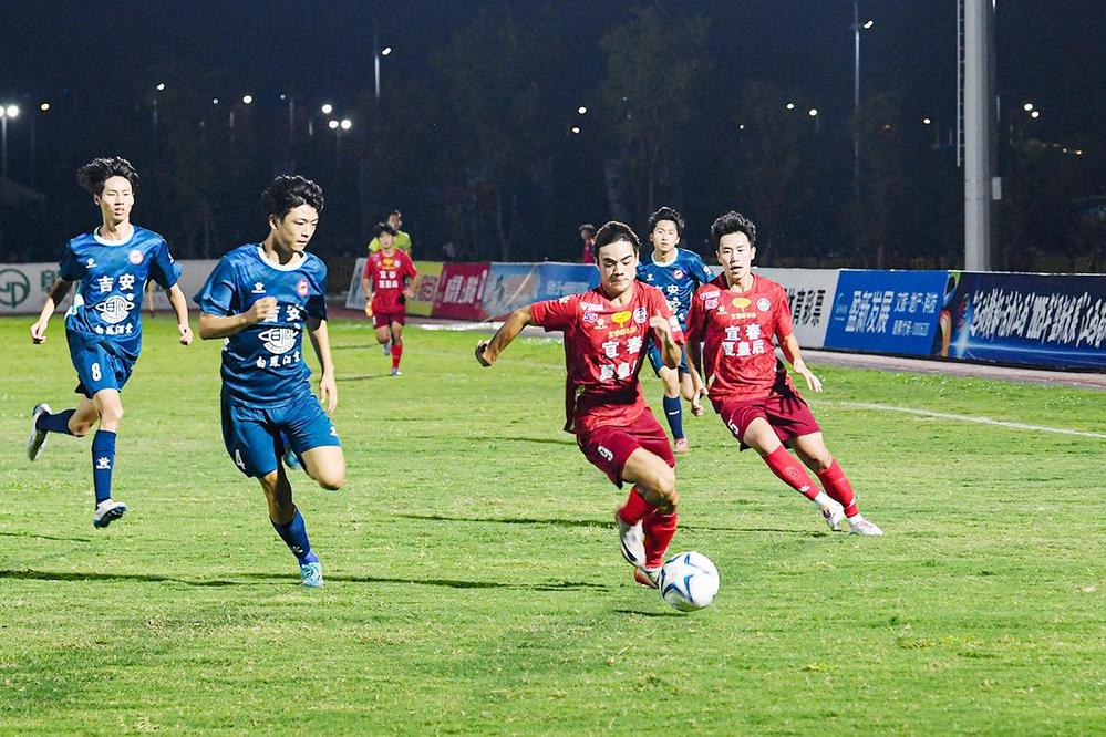 易边再战,双方的对抗更加激烈。宜春队继续保持进攻态势,尽管多次进攻给对方造成较大威胁,但吉安队稳固的防守并未让宜春队如愿得分。比赛中,双方球员斗志昂扬,攻防紧凑,多次在对方禁区制造有威胁的射门良机。现场球迷欢呼声此起彼伏。