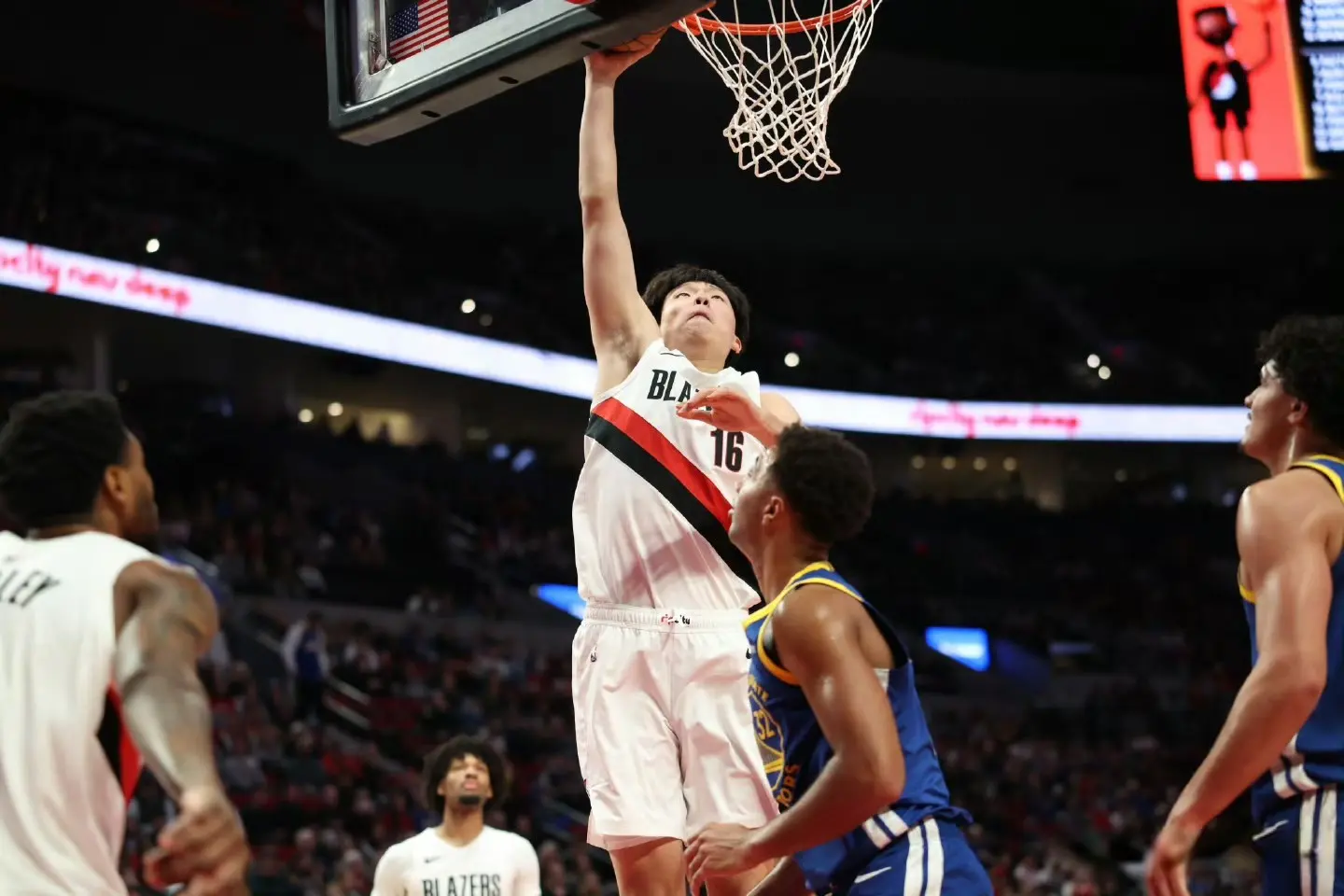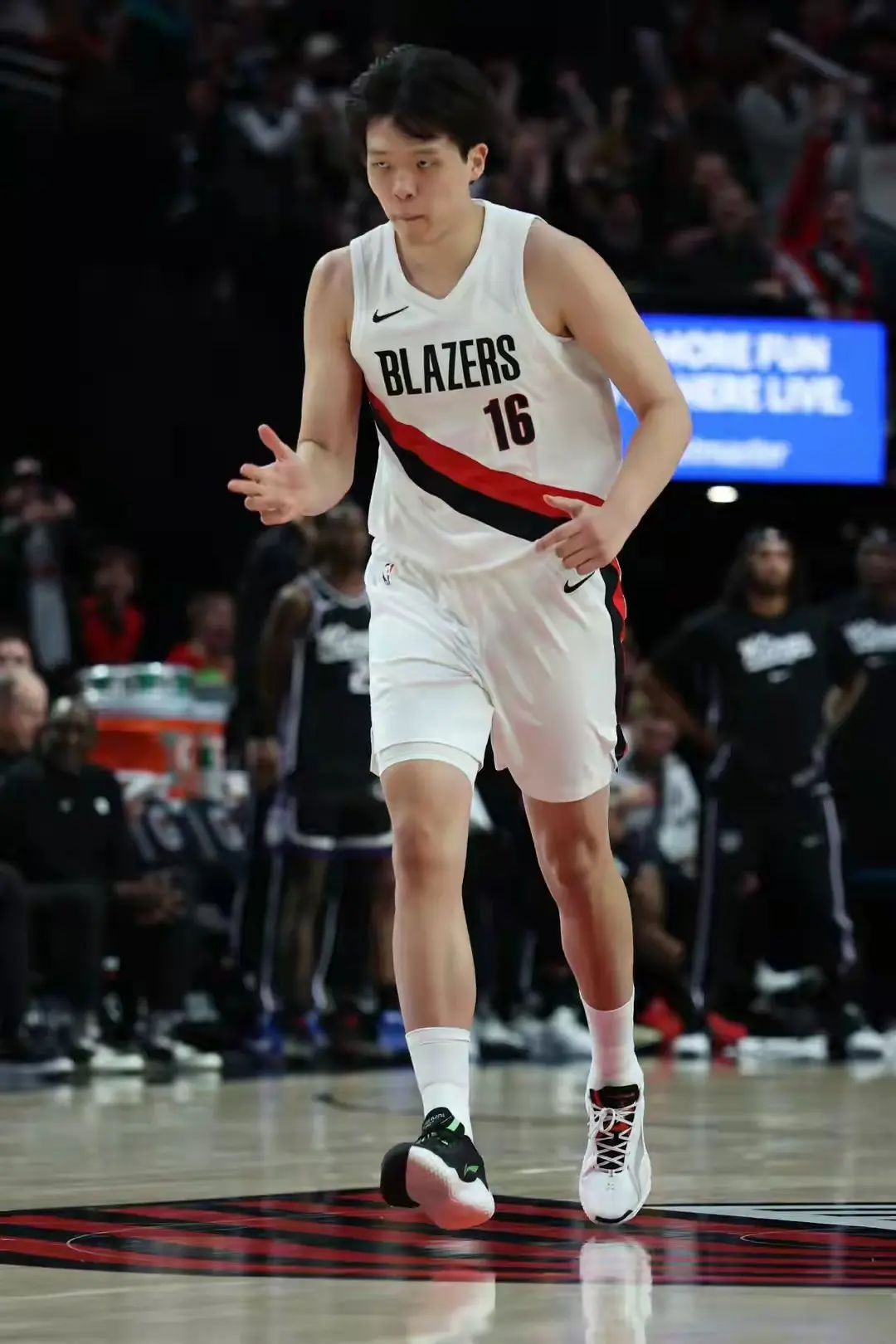 主教练刘维伟说得很正确,开拓者队已经领先勇士队20多分了,比赛的胜负已经没有悬念了,在距离第四节比赛结束还有5分钟左右的垃圾时间派杨瀚森上场。