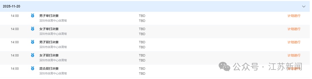 在此前举行的第十五届全国运动会羽毛球项目资格赛中,成年男团方面,国羽“一哥”石宇奇领衔的江苏队以A组三战全胜的成绩强势晋级。11月20日将举行全运会男子单打决赛、女子单打决赛、男子双打决赛、女子双打决赛、混合双打决赛。