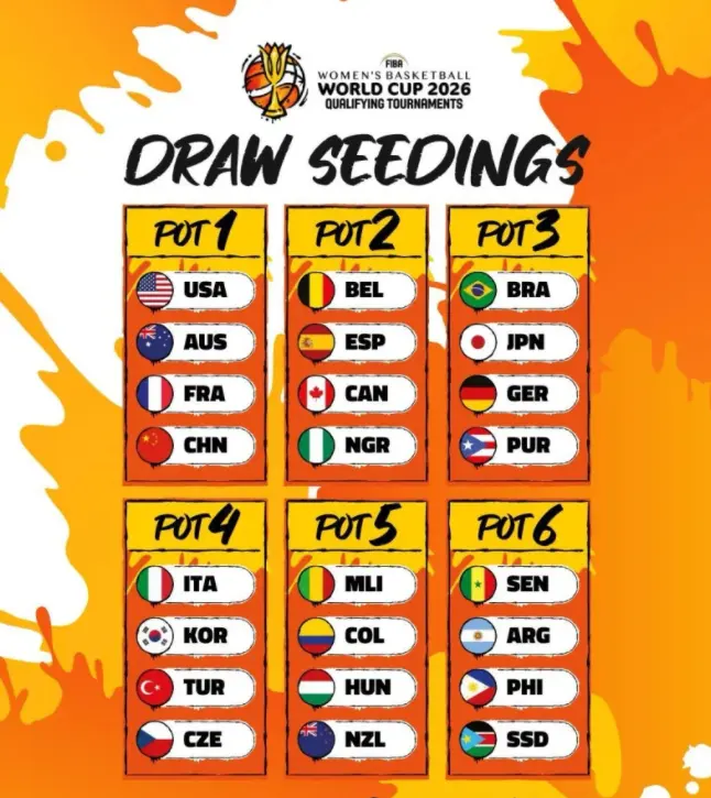 2026年女篮世界杯预选赛抽签分档正式出炉,中国队与美国队、澳大利亚以及法国队被划分到第一档,比利时、西班牙、加拿大以及尼日利亚被划分到第2档,巴西、日本、波多黎各以及德国进入到第三档。而意大利、韩国、新西兰、阿根廷等队,他们则分别进入到第4、第5以及第6档。按照分档情况来看,中国队世预赛小组赛已经成功避免美国、澳大利亚以及法国三大劲敌,冲击小组出线算是稳了。