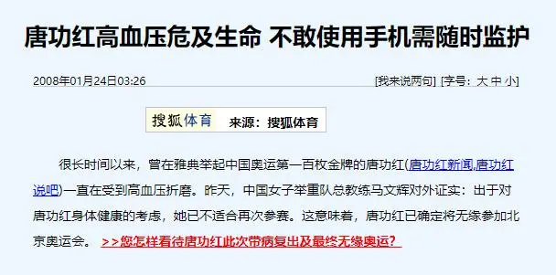 在奥运会结束后,唐功红经常出现头晕目眩的情况,到医院一检查,她的血压竟然高达120/170。