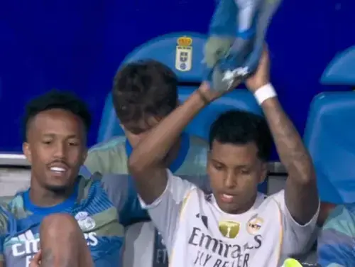 比赛第63分钟,皇马当时以1比0领先,主帅阿隆索做出换人调整:用维尼修斯换下罗德里戈。当罗德里戈坐在替补席上时,他一边向队友米利唐抱怨,一边愤怒地将工作人员递来的毛巾狠狠摔在地上,疑似表达对被换下的不满。