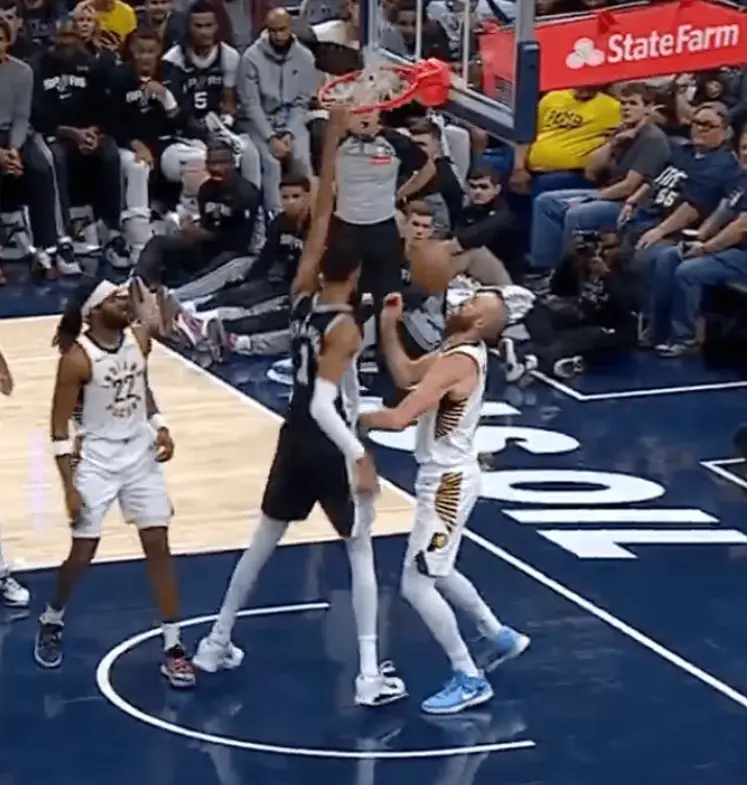 在今天的季前赛里,文班亚马彻底统治了赛场。他轻描淡写的砍下了27分11篮板4助攻3抢断1盖帽的华丽数据,攻防两端都是无可挑剔的存在。值得一提的是,赛场上文班亚马还上演了站扣胡夫的戏码。要知道胡夫的身高也达到了2米16,是个庞然大物,但文班亚马却可以轻松隔扣,不得不说这个身高臂展太夸张了。