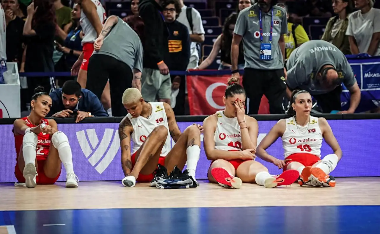 女排世联赛总决赛四强出炉。在一场土耳其女排和日本队的比赛中,虽然土耳其两度落后两度扳平比分,但在决胜局仍以9-15落败无缘四强。赛后,土耳其球员落寞的坐在挡板前,球迷则把输球的怒火喷向了17扣0中的巴拉丁和主帅桑塔雷利。五局比分21-25/25-16/20-25/25-22/9-15。