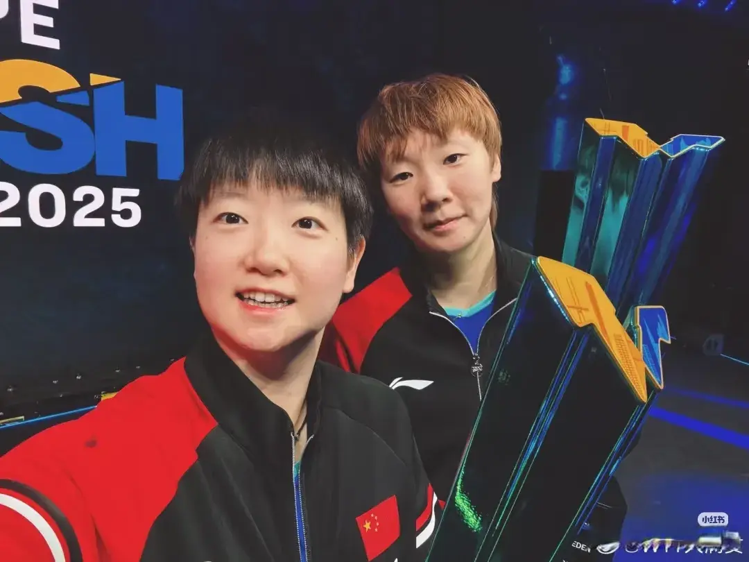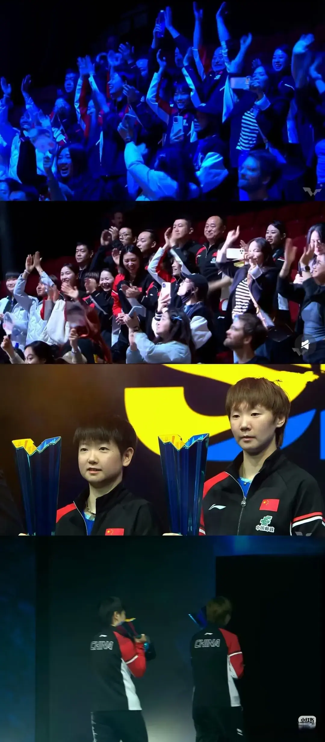 昨晚国乒女队和教练们都在观众席看这一场女双比赛,赢下比赛的那一刻,大家都站起来鼓掌欢呼,每个人都很开心,这才是大家喜欢看到的画面。颁奖仪式结束后,姐俩一起扛着奖杯离场了,因为奖杯太重了,拿不动就扛着。莎莎和曼昱也成功会师女单决赛,期待今天两位给大家带来精彩的对决!