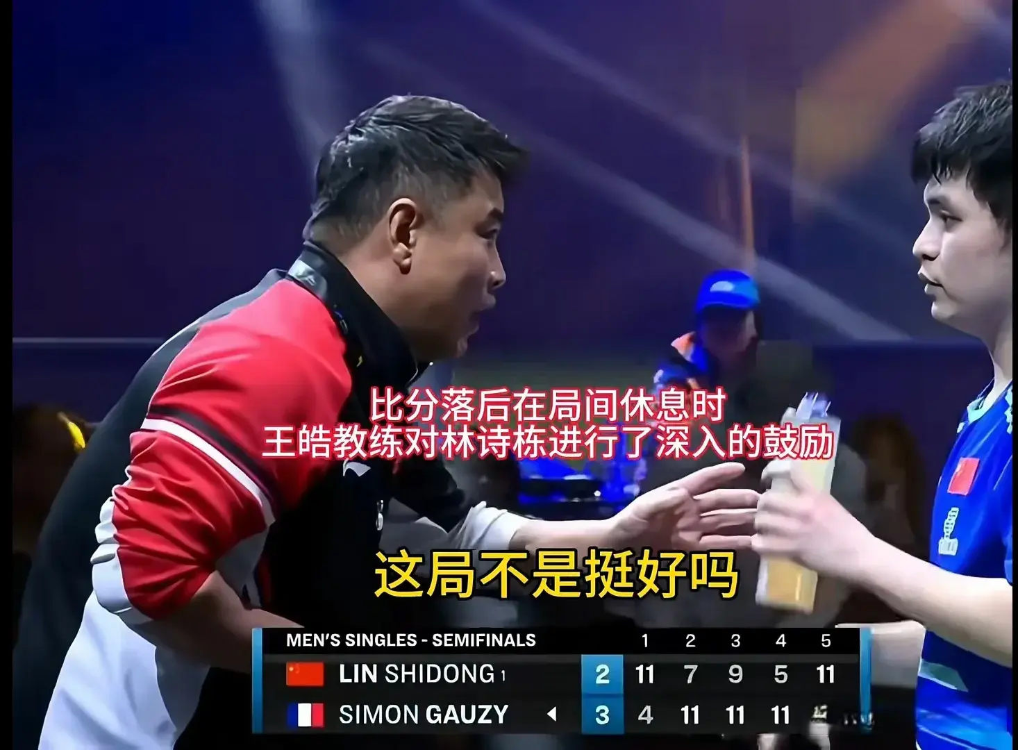 在女双决赛前,还有两场男单半决赛,看林诗栋这场比赛,确实紧张了。林诗栋在大比分1-3落后,第五局开局小比分1:4落后的情况下,连扳三局拿下这场比赛,经过这次逆转,相信林诗栋也会成长很多吧。第五局1:4落后时王皓叫了暂停,暂停后林诗栋是11-8拿下,赢下这一局后,这口气就提起来了,局间王皓开始夸夸:“这局不是挺好的吗?就是不能躁,人一燥就站不住了。”到了第六局林诗栋小比分6:9落后,然后连拿5分,又扳回一局,大比分来到3-3。