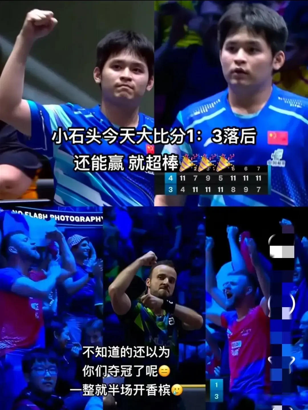 西蒙昨晚庆祝的早了,他在3-1领先时就开始和现场观众庆祝,以为自己稳赢,结果被逆转了。确实到了后面,林诗栋打的更冷静了,一分一分去追。
