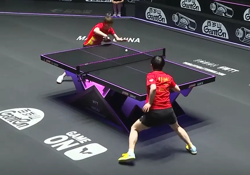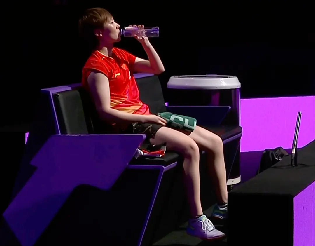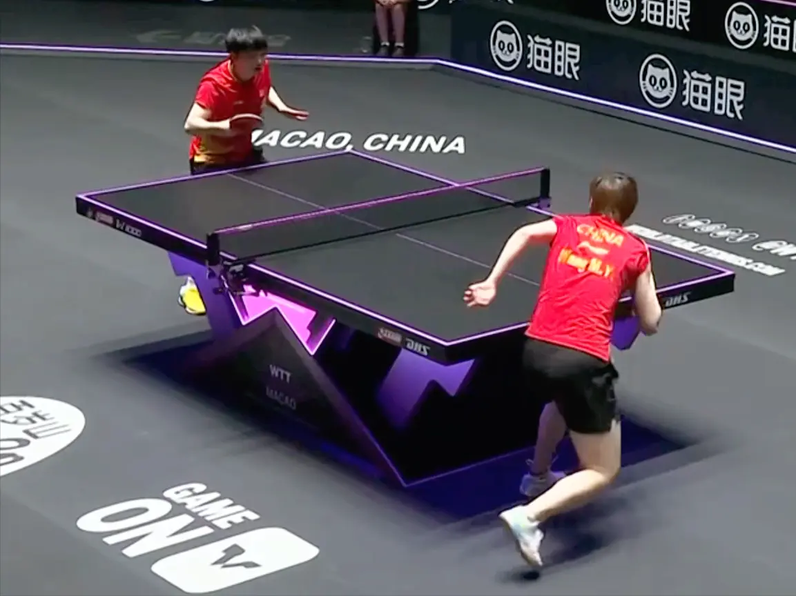 决赛开始后,双方上来就进入了多板相持环节,王曼昱率先得分后被孙颖莎挑打追平,随后再次领先被对方的正手强势破防2-6、3-7落后于人,追至5-7后连丢3分出现局点,紧接着在5-10的位置连追3分,但最终还是被孙颖莎正手强势进攻突破,最终以8-11先丢一城。