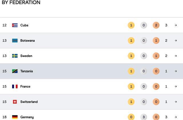 截止目前,中国队以2银2铜总计4枚奖牌,排在奖牌榜第19位,比赛进入尾声,中国队继续加油!