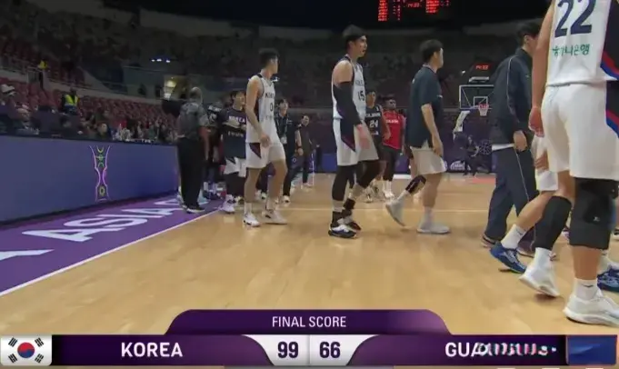 比赛开始后,首节之争关岛并没有落入下风,和韩国厮杀的是有来有回。但是从次节开始,韩国男篮就占据场上的绝对主动权,虽然三分手感不佳,但是却加强了防守,疯狂拼抢篮板,同时进攻端也是大肆砍分,很快分差被持续拉开。下半场关岛还是没有办法调制对手的进攻,只能眼睁睁看着自己继续被吊打,最终全场比赛结束,韩国男篮技高一筹4人得分上双大胜关岛,成功将八强门票收入囊中!