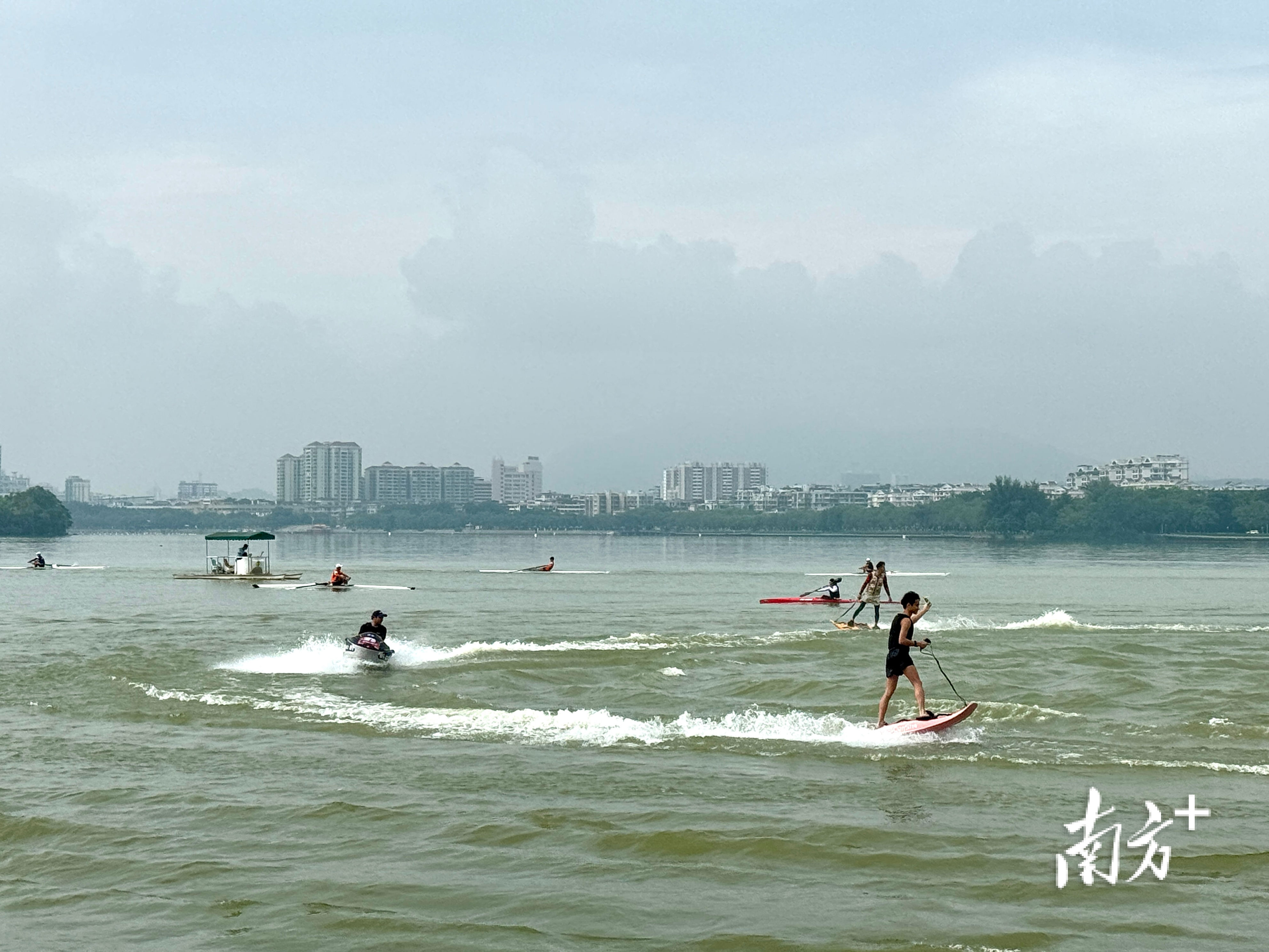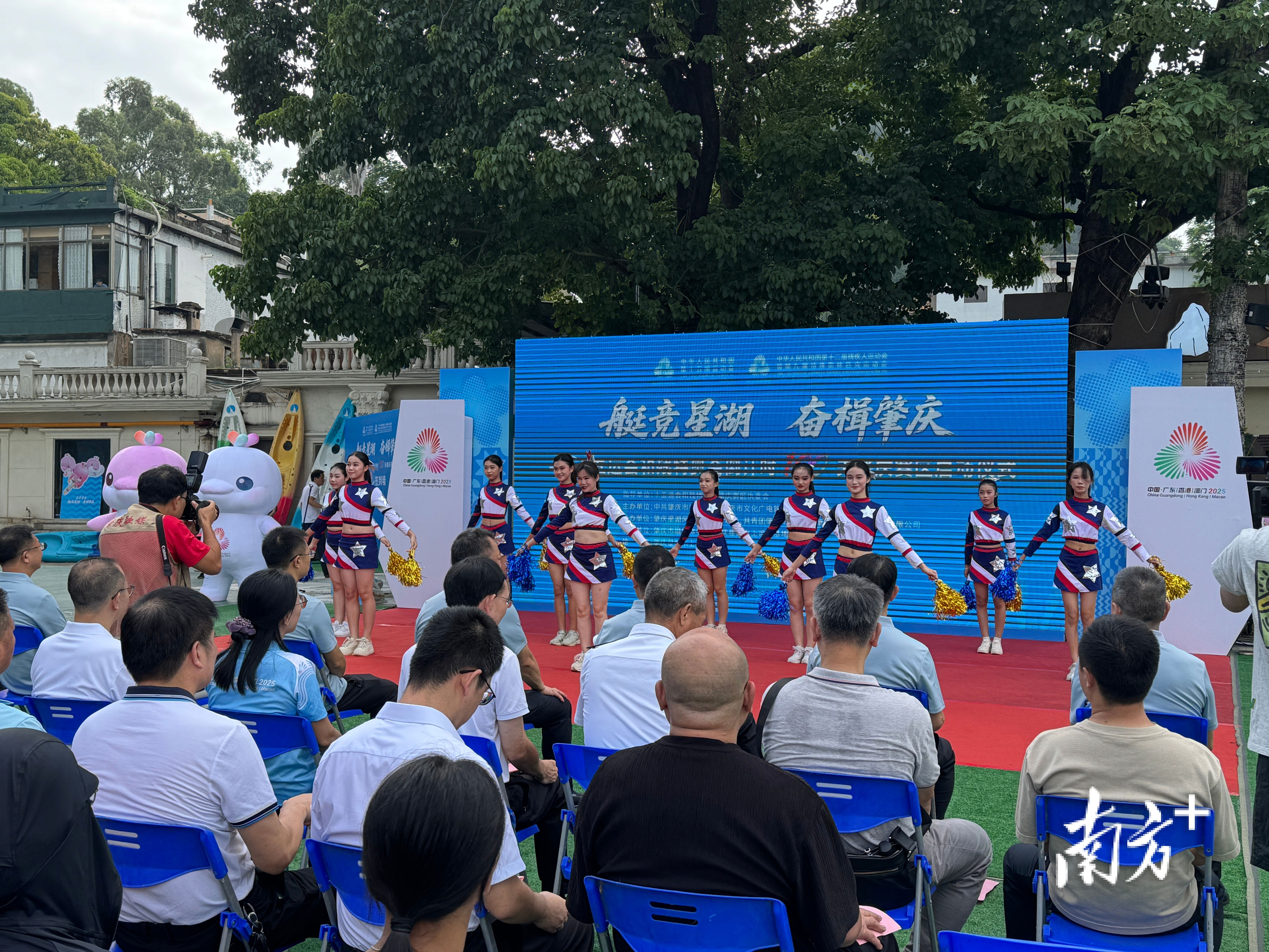 活动现场,醒狮舞动,鼓乐齐鸣,活力四射的健美操表演拉开序幕。随后,广东省毽球队献上了花式毽球表演,高超的技艺、巧妙的跳踢,令现场观众发出阵阵赞叹。星湖水面上,电子冲浪板、皮划艇、赛艇等项目轮番上演,展现了水上运动的力与美。