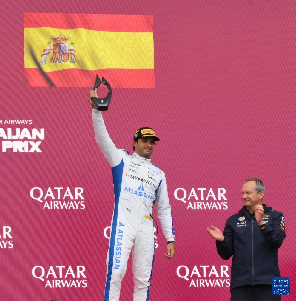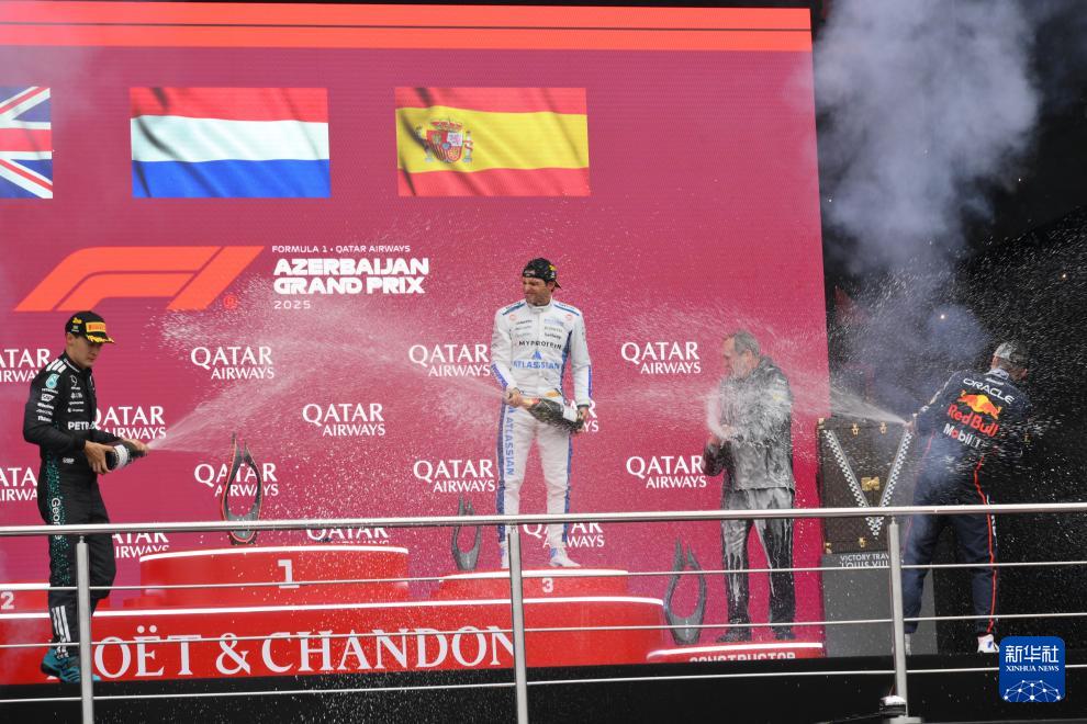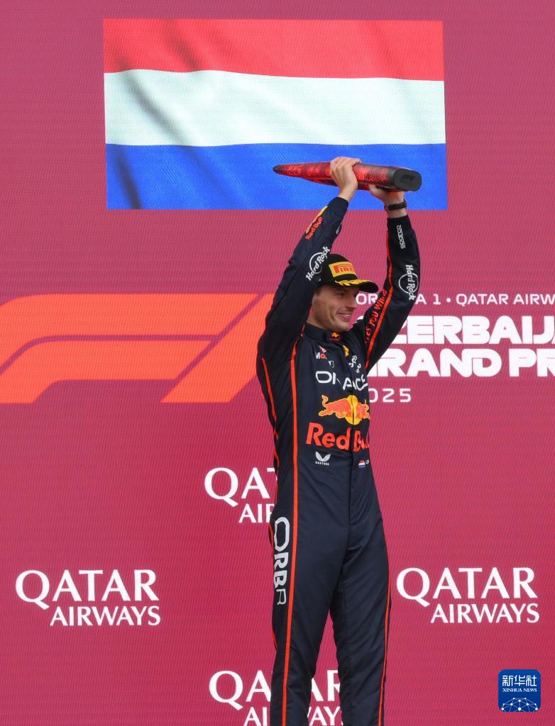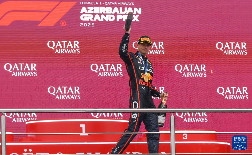 当日,在阿塞拜疆首都巴库举行的2025赛季世界一级方程式赛车锦标赛(F1)阿塞拜疆大奖赛正赛中,红牛车队荷兰车手维斯塔潘获得冠军,梅赛德斯车队英国车手拉塞尔和威廉姆斯车队西班牙车手塞恩斯分获亚、季军。