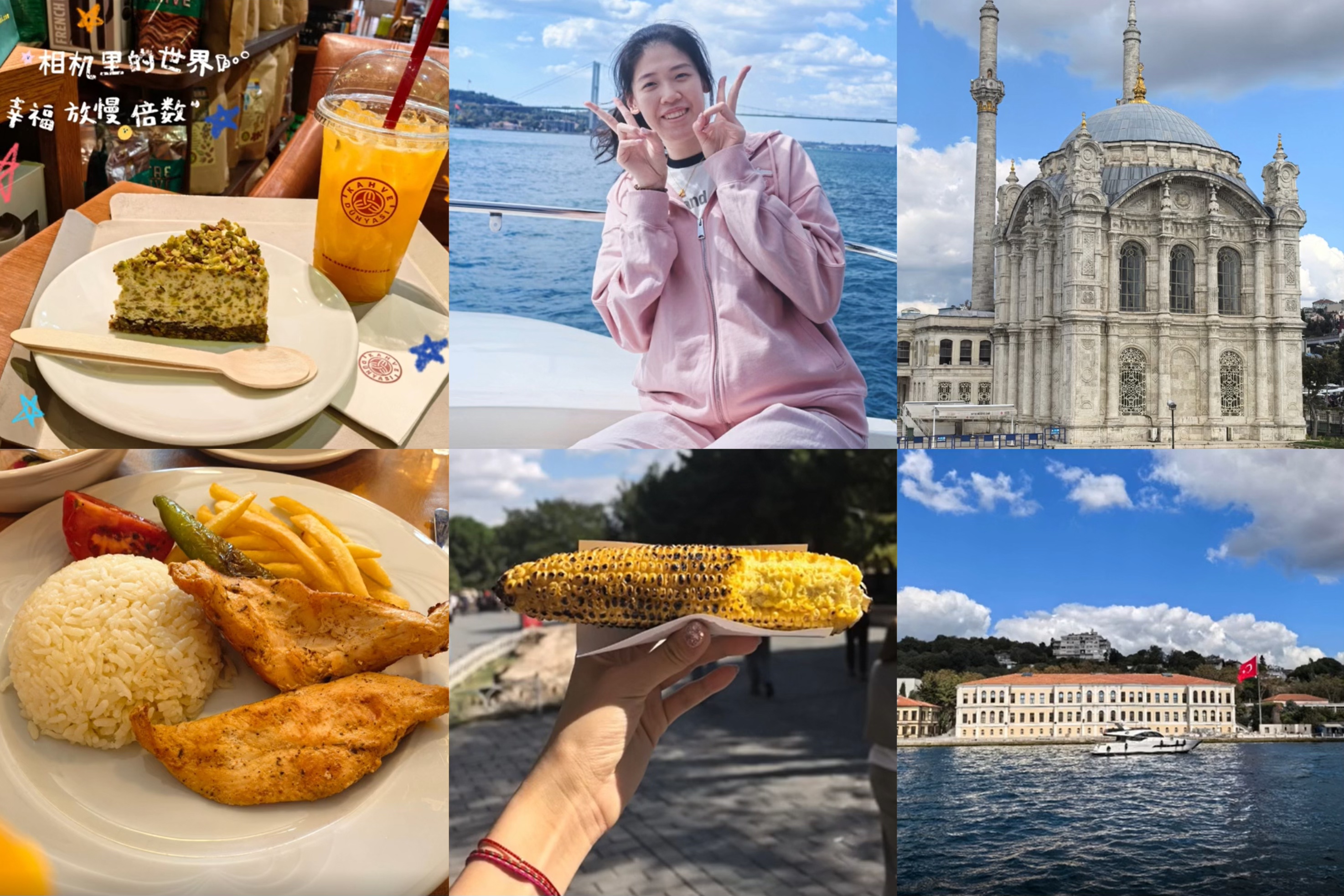 另外还看了伊斯坦布尔最具代表性的奥塔科伊清真寺,周边的海岸建筑,浓浓的欧亚风情扑面而来。镜头里的李盈莹时而俏皮地比“V”,时而眺望远方,神情自然,仿佛将疲惫与压力都暂时抛诸脑后。