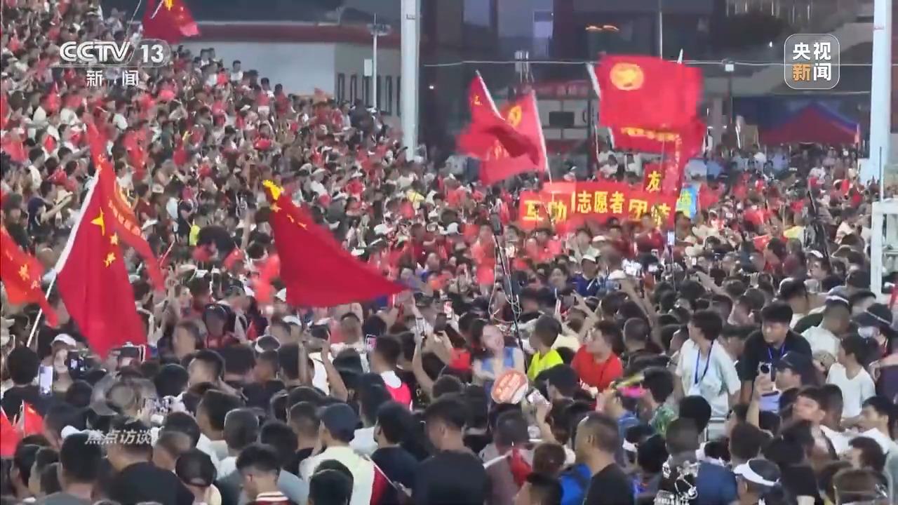 在观赛的队伍中,有一个特别的群体,他们是当时从各地来榕江帮助救灾的人们。村超重启后,当地专门邀请这些帮助过他们的人来观看比赛,以表达感谢。