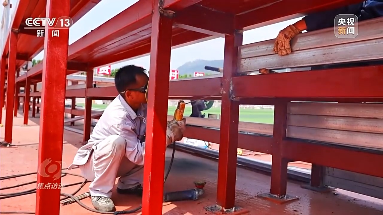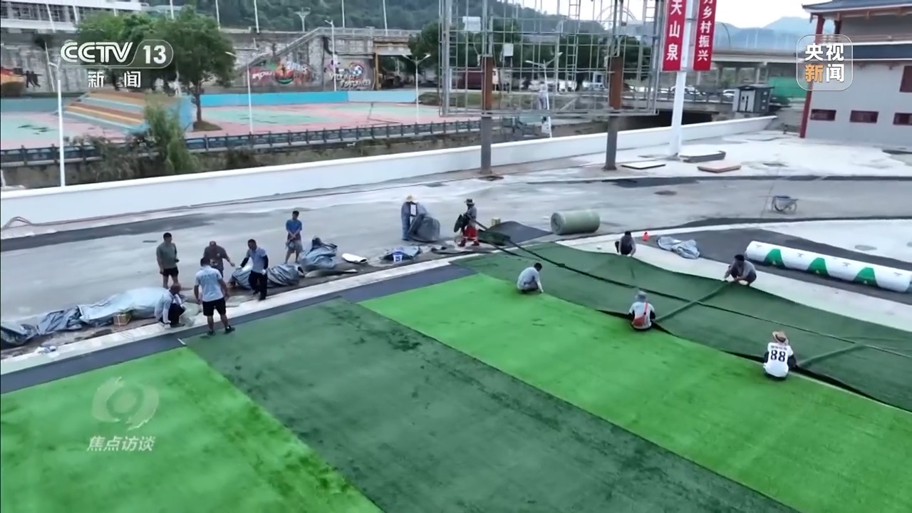 其间,榕江连续高温天气,大家顶着烈日工作,如果感觉不适就到当地配备的休息室短暂的休息、补水,然后继续赶工。大家都铆足了劲,想让“村超”尽快重启,恢复往日的热闹景象。