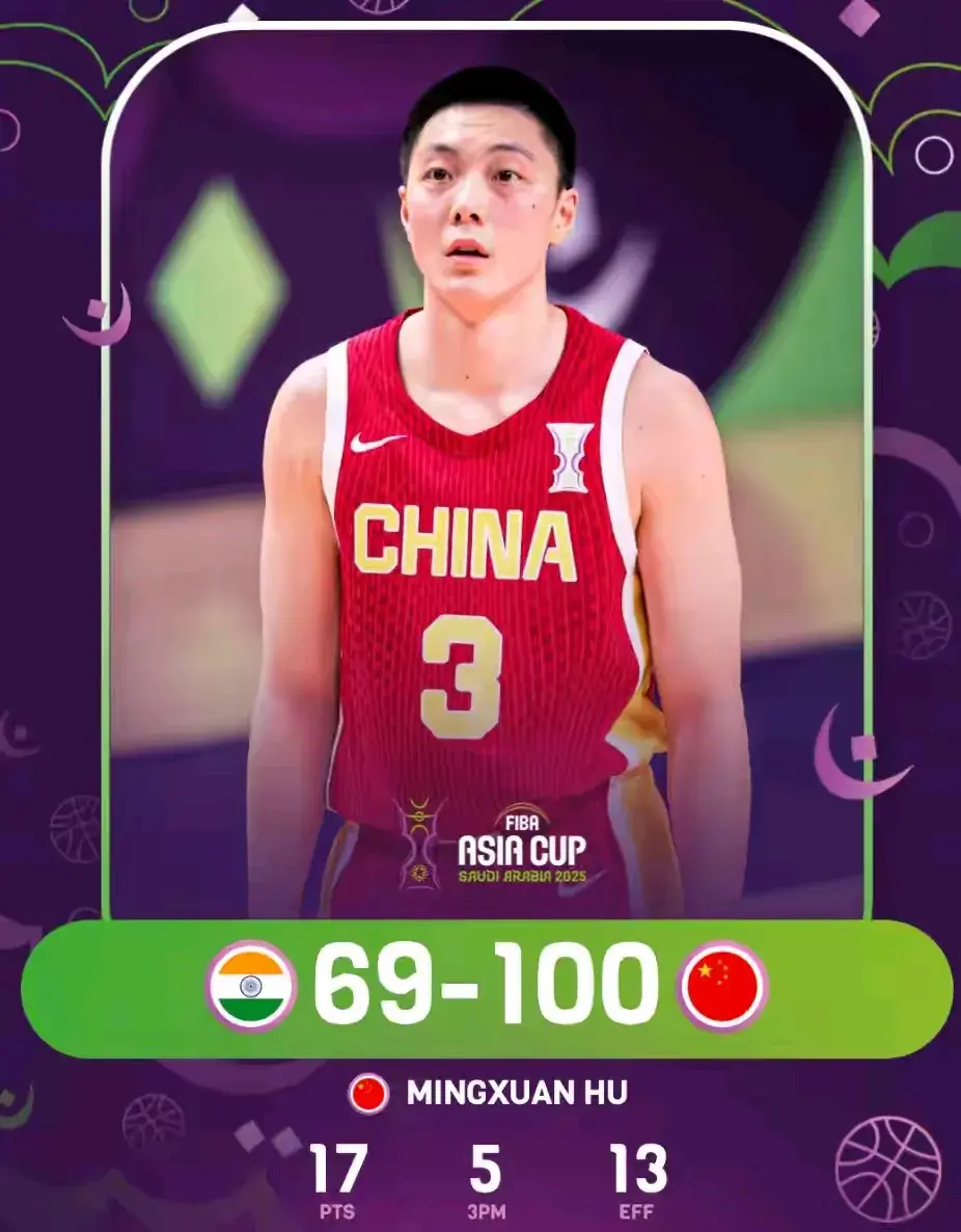 胡明轩的起伏便是最佳例证。首战沙特他状态全无,但郭士强坚持将其放在首发,目的很明确:需要他的防守去缠斗对方归化后卫拉赫曼(该场狂砍32分)。次战印度,卸下心理包袱的胡明轩果然爆发,高效砍下17分。同样完成救赎的还有赵嘉义:对阵沙特时受犯规困扰仅打6分钟,此役替补登场却以17分成为板凳奇兵。这种调整源于教练组的策略——当印度派出高大阵容时,用更强壮的王俊杰首发护框;待对手轮换小个阵容,再派上机动性更强的赵嘉义突击。