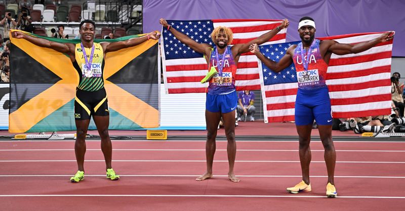 赛前,莱尔斯大放豪言,认为自己是接管男子200米的神,比博尔特更强。虽然没打破博尔特的世界纪录,但莱尔斯也用四连冠证明,自己赛前没说大话。此外,上届世锦赛,莱尔斯就已包揽三金(男子100米、200米和4×100米接力),“复制了”博尔特的成就。