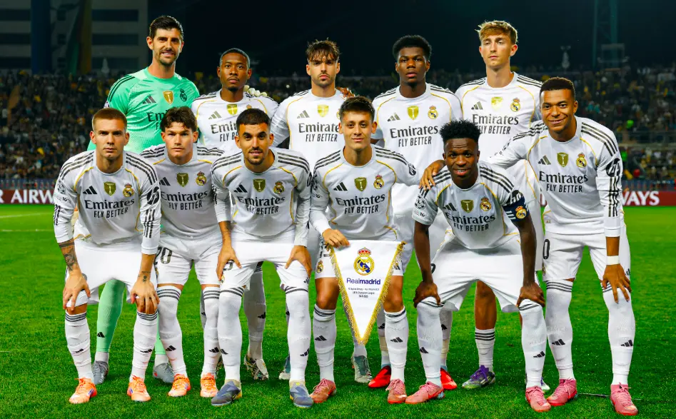 尽管两队实力相差悬殊,阿隆索依旧没有怠慢,姆巴佩、维尼修斯、居莱尔、琼阿梅尼都首发登场,维尼修斯更是戴上了队长袖标。
