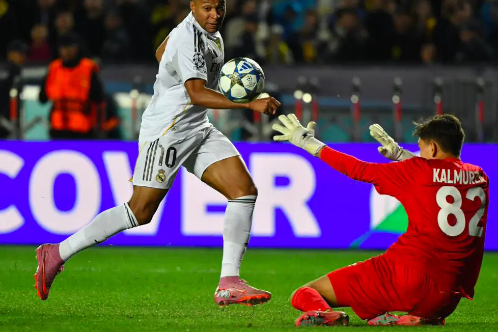 第23分钟,姆巴佩打进了马斯坦托诺制造的点球。凭借这一进球,姆巴佩创造纪录,成为皇马队史首位包揽赛季欧冠前3球的球员。