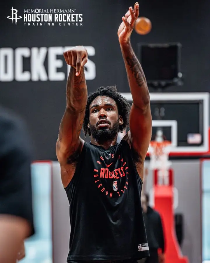 火箭官方晒出前锋塔里-伊森的训练照,这位身穿火箭训练服的年轻人正专注于自己的投篮动作。对处于合同年的伊森来说,这个夏天的意义远超往常。