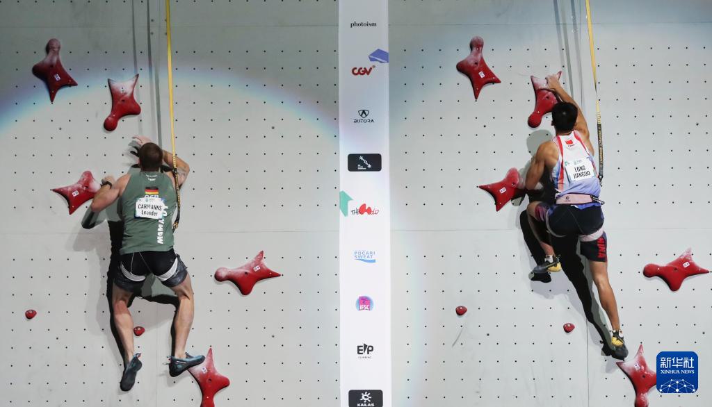 当日,2025年攀岩世锦赛男子速度赛决赛在韩国首尔举行。