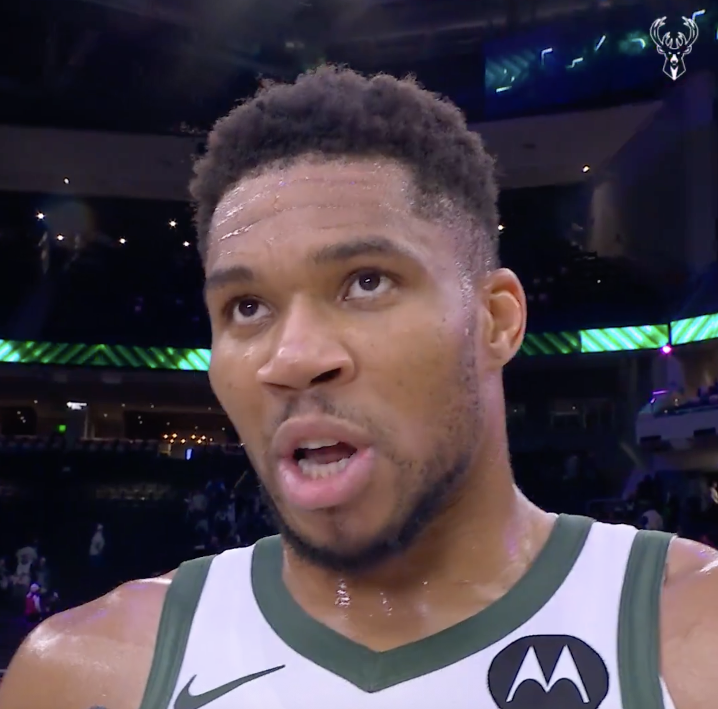 赛后雄鹿球员扬尼斯-阿德托昆博接受了记者采访。