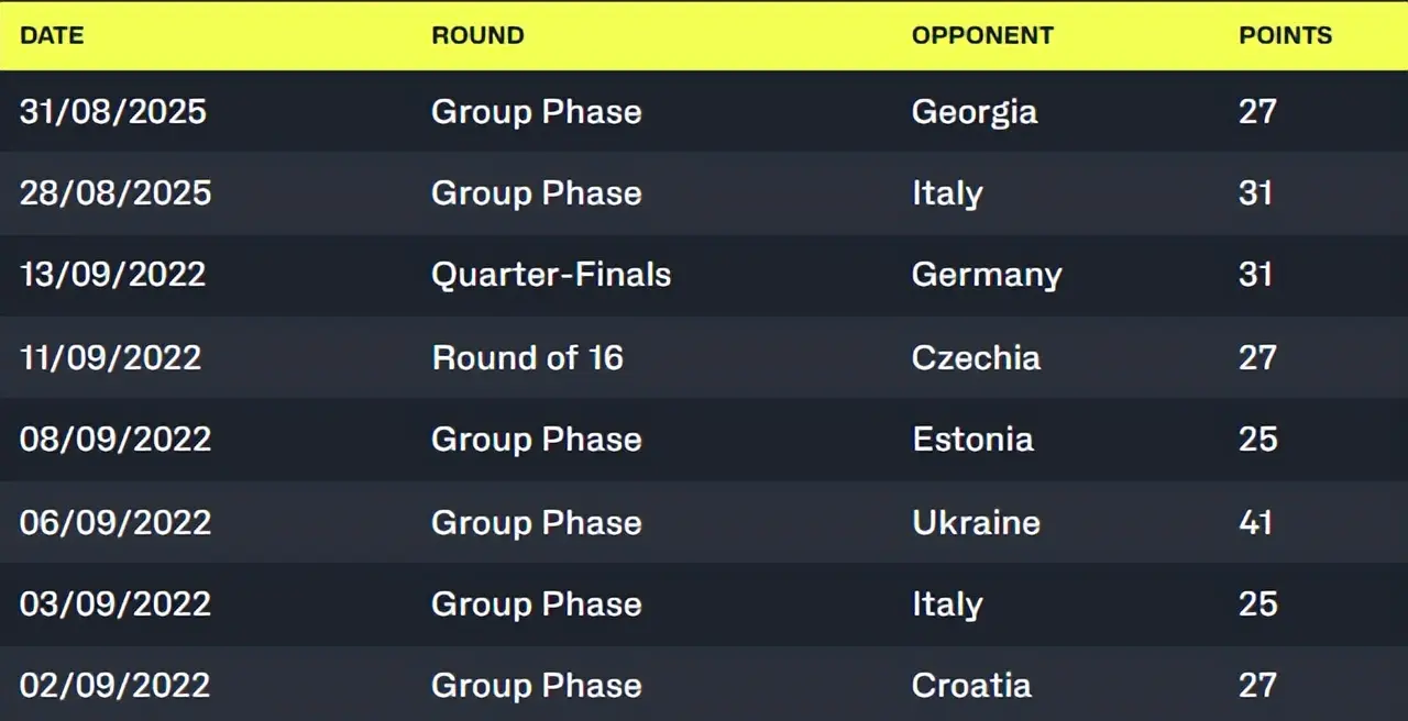 字母哥在2015年首次参加欧洲杯篮球赛,但他连续得分25分以上的纪录是从2022年的上一届比赛开始的,他错过了2017年的比赛。