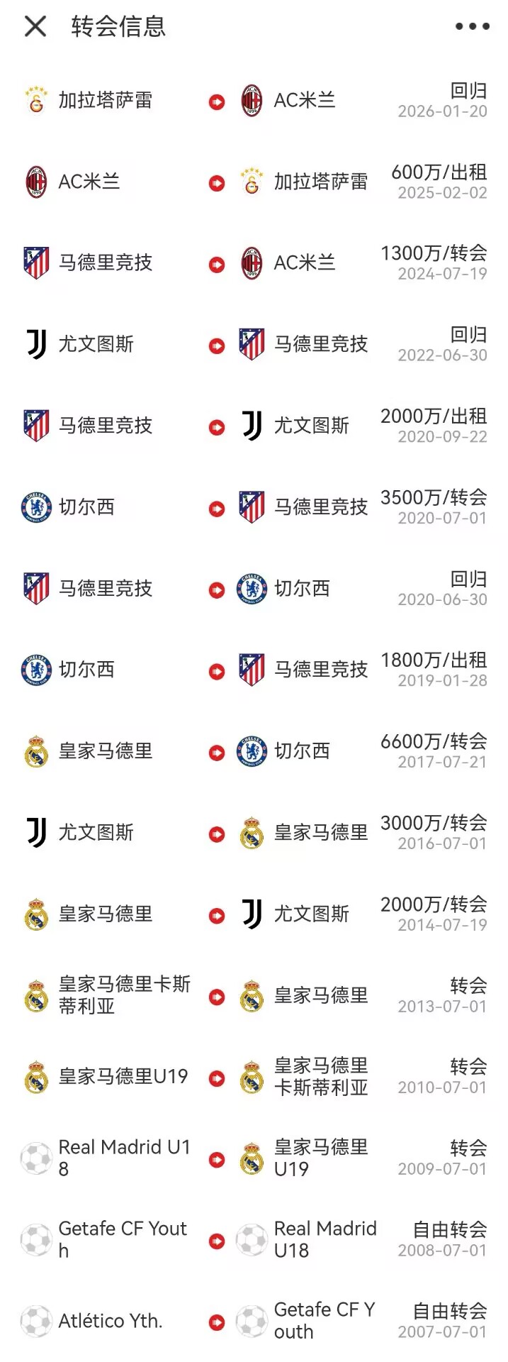 这将是莫拉塔职业生涯效力的第7支球队,此前他已先后为皇马、尤文、切尔西、马竞、AC米兰、加拉塔萨雷效力,并多次有离队后重返老东家的操作。此外,莫拉塔青训时期还曾效力于赫塔费青年队。