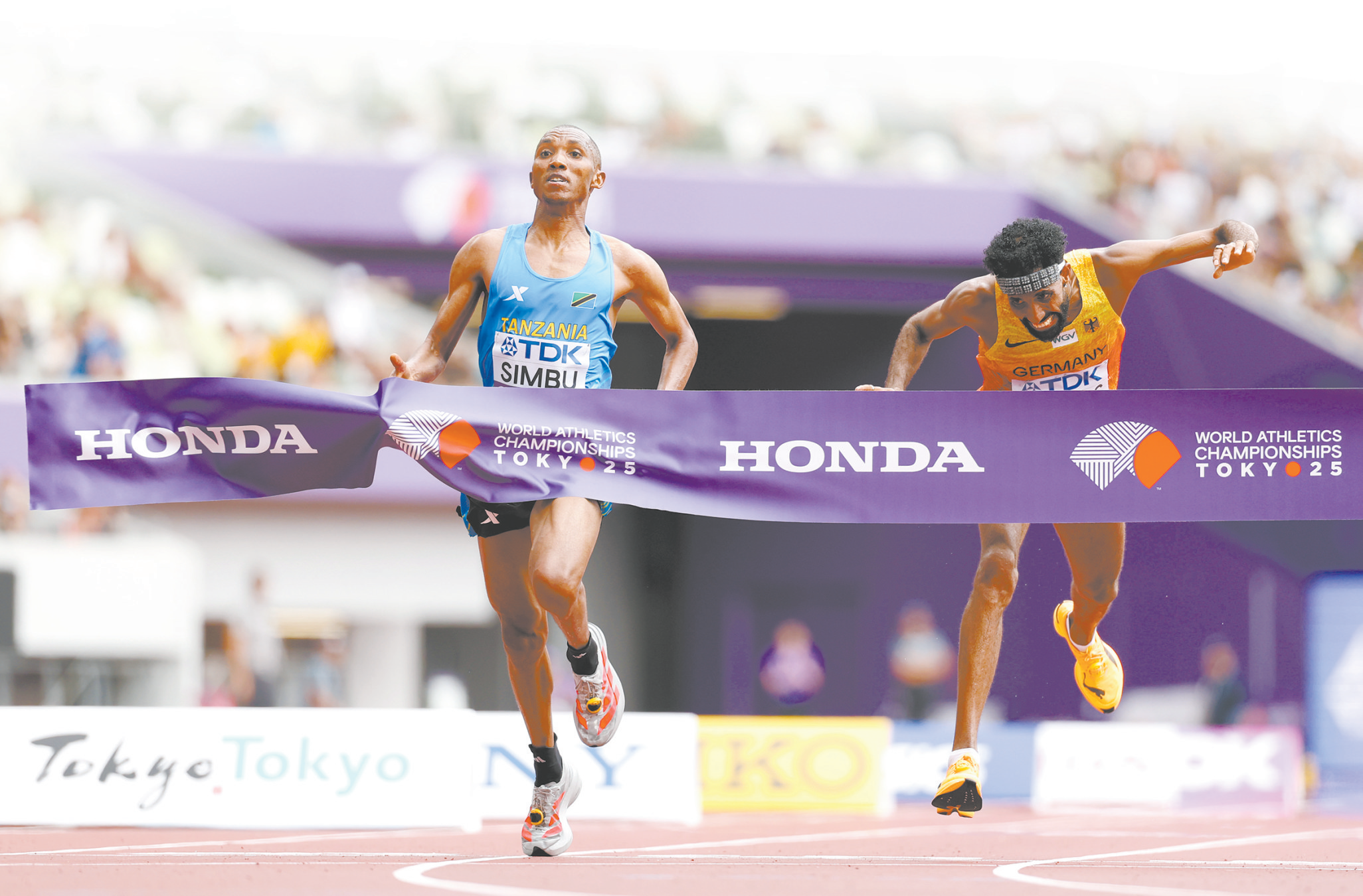 【环球时报特约记者 张威客】2025年世界田径锦标赛东京站男子马拉松决赛15日落幕,坦桑尼亚选手阿尔方斯·费利克斯·辛布以0.03秒的微弱优势,击败德国选手阿曼纳尔·佩特罗斯夺冠,两人均跑出2小时09分48秒的成绩,意大利选手伊利亚斯·奥瓦尼摘铜。这一结果不仅创下世锦赛马拉松史上最接近的冠亚军冲线纪录,更让坦桑尼亚收获首枚世锦赛田径项目金牌。