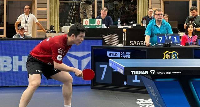 按照赛程表,他将分别出战第1盘、第4盘的比赛。第1盘,樊振东的对手是斯佐迪,第4盘对手是努伊提克。樊振东3-0战胜斯佐迪,3局比分为:11-4,11-2,11-7。而另外两个队友弗朗西斯卡、约奇克也分别战胜对手,这样萨尔布吕肯总比分3-0战胜多特蒙德乒乓球队。