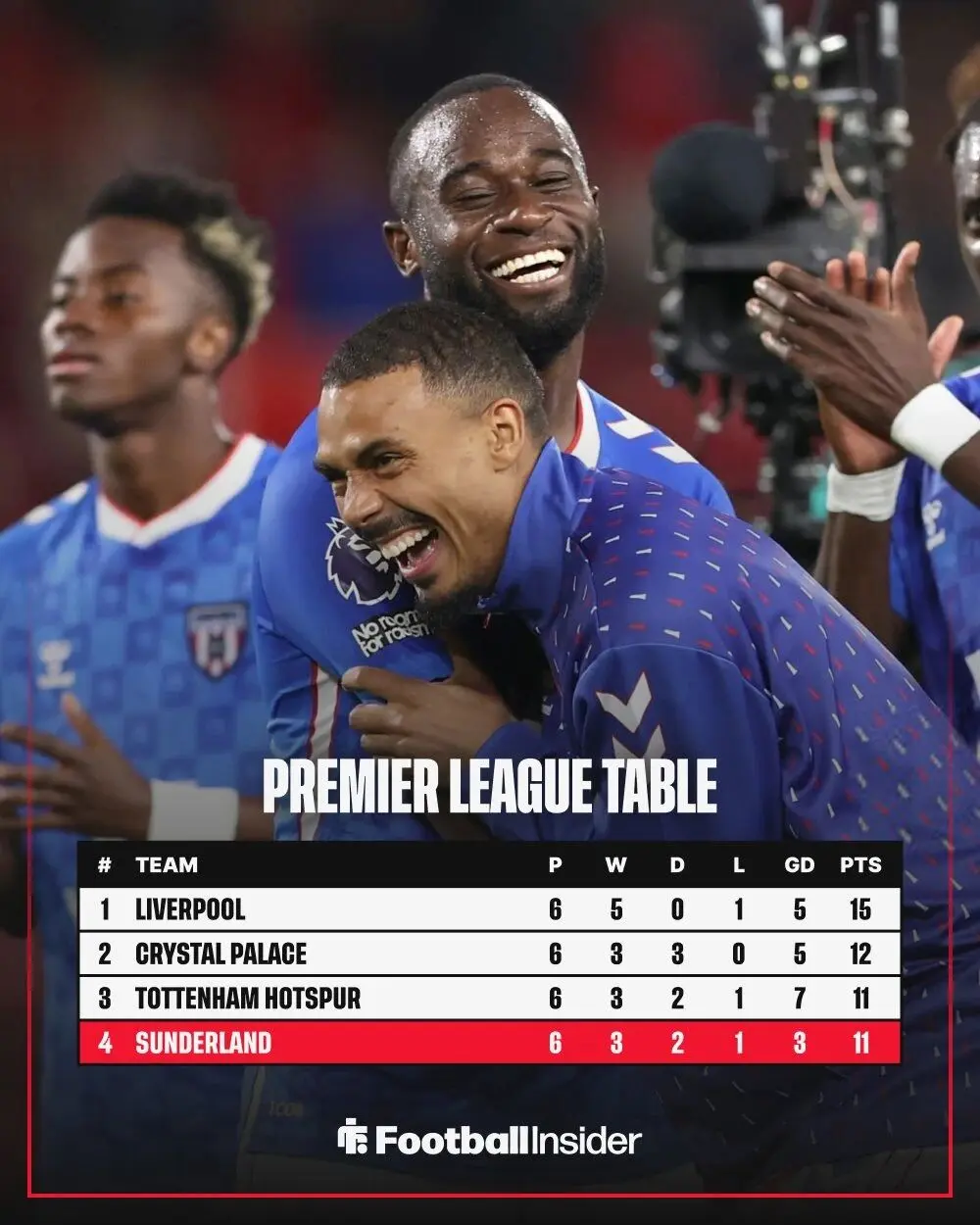 英超第6轮比赛,升班马桑德兰客场1-0力克诺丁汉森林。前6轮战罢,桑德兰取得了3胜2平1负的骄人战绩,暂列英超第4位。这支夏窗在转会市场投入了1.9亿欧元打造的全新球队,如今俨然成为了英超最大的黑马。下一轮比赛,他们将做客挑战曼联,届时相信他们会吸引更多球迷关注的目光。