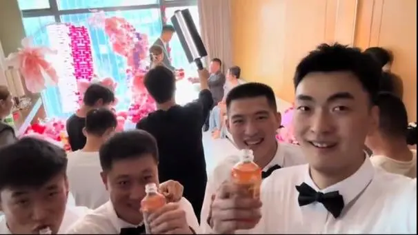 而辽篮一队正在沈阳基地积极备战夏训、备战新赛季。而在近日,前辽篮冠军成员郭旭也迎来好消息,辽篮刘雁宇的个人社媒不久前上传了一段视频,画面正是郭旭举办婚礼。只见郭旭和妻子缓缓走到舞台中央,有仪式,有夫妻间的互动。伴郎团有大家非常熟悉的刘雁宇和赵率舟。