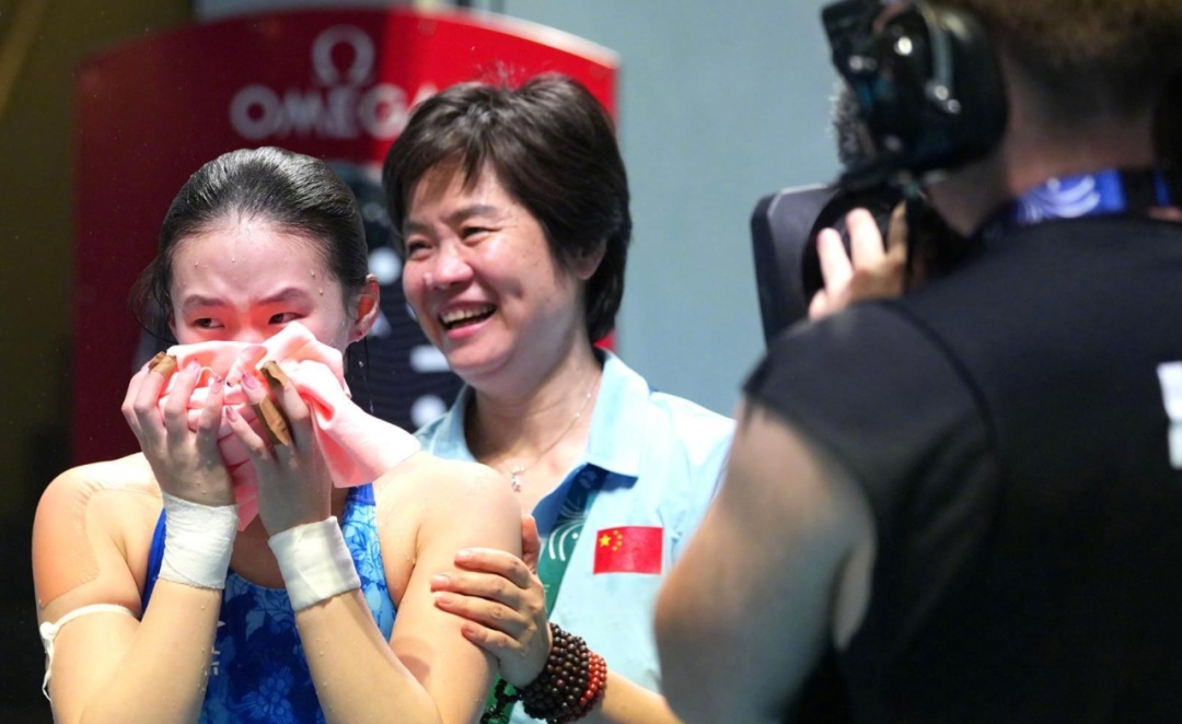 10米台最后一跳5253B以86.4分锁定胜局,陈芋汐难掩激动,喜极而泣。本届世锦赛,老搭档全红婵因伤缺席,陈芋汐和新队友出战,面对更大的责任与压力。