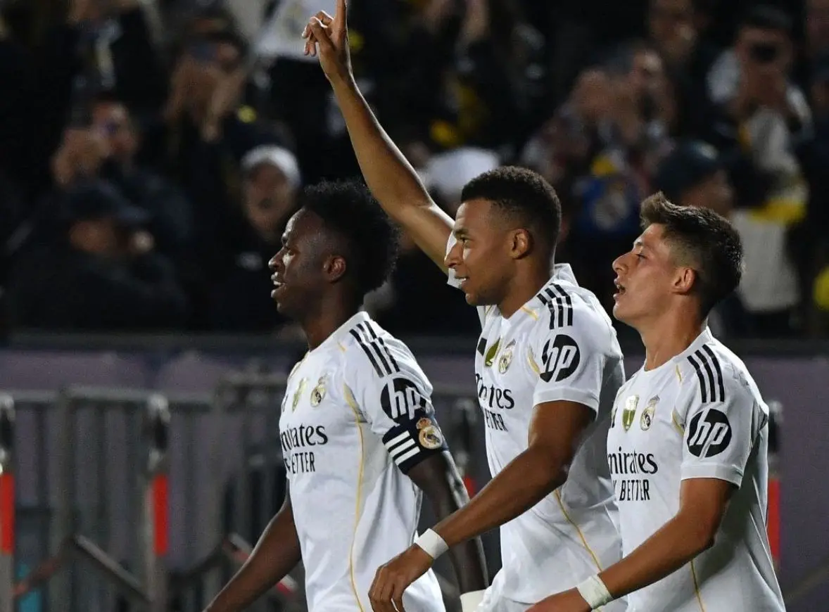 在2-5输给马竞之后,皇马全队马不停蹄,乘机前往阿拉木图。虽然经过长途奔波后有些劳累,但皇马球员还是主宰了比赛。第25分钟,马斯坦托诺制造点球,姆巴佩主罚命中。