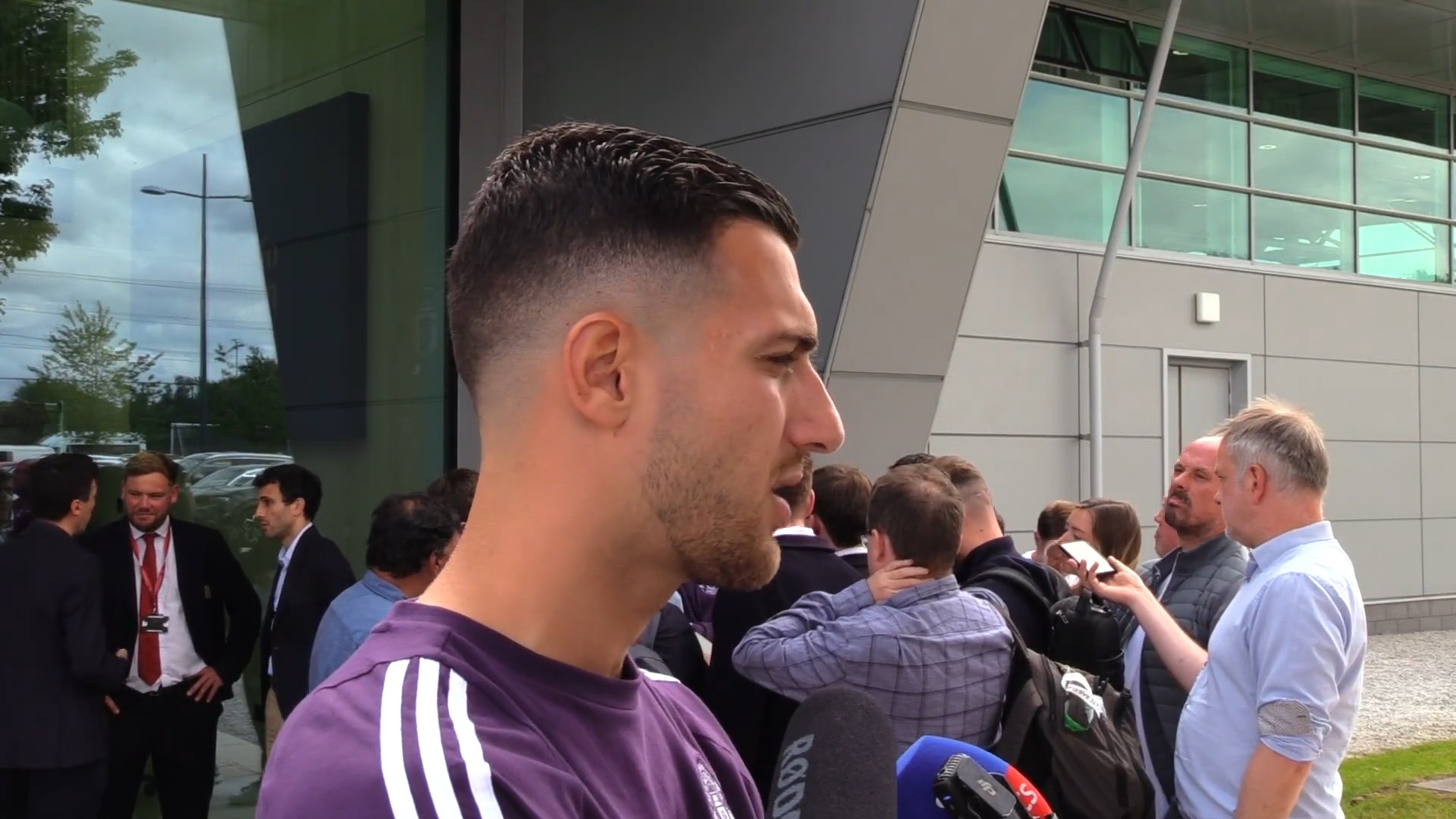 在回到完成重建的卡灵顿训练基地之后,曼联后卫达洛特接受了来自现场诸多媒体的采访。