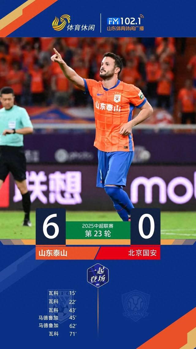 昨晚19:35,中超第23轮山东泰山vs北京国安,比赛在济南奥体中心打响。最终,山东泰山主场6-0战胜北京国安。