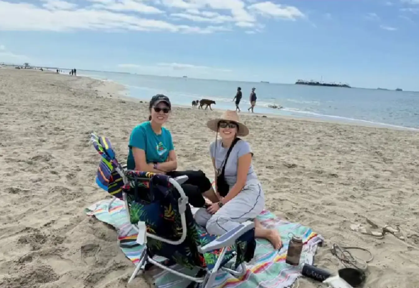 女儿白浪常常陪在身边,母女俩在沙滩上摆着沙滩椅,戴着草帽,谈笑间笑声不断。