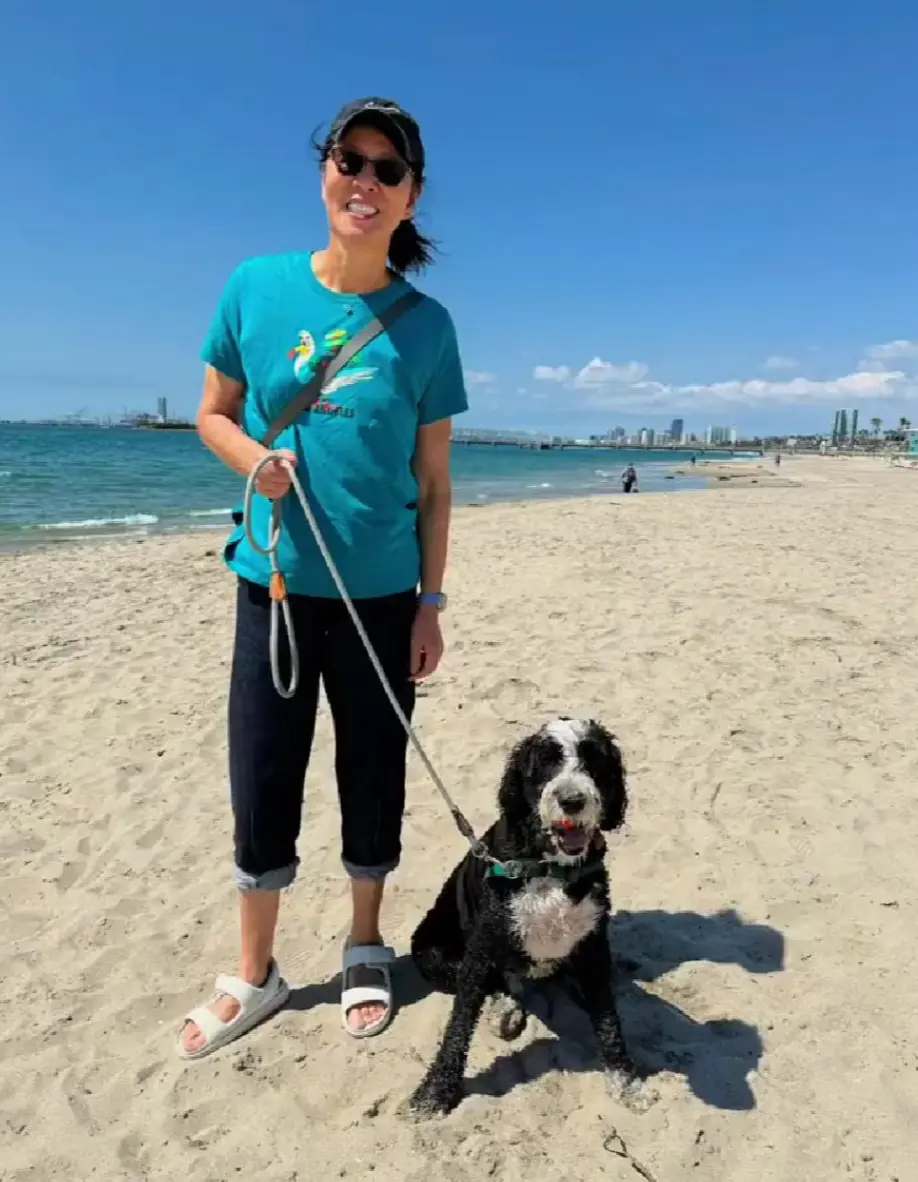 带着小狗在海滩边奔跑,把玩具抛向远处,看着狗狗拼命追逐,自己也露出畅快的笑容。