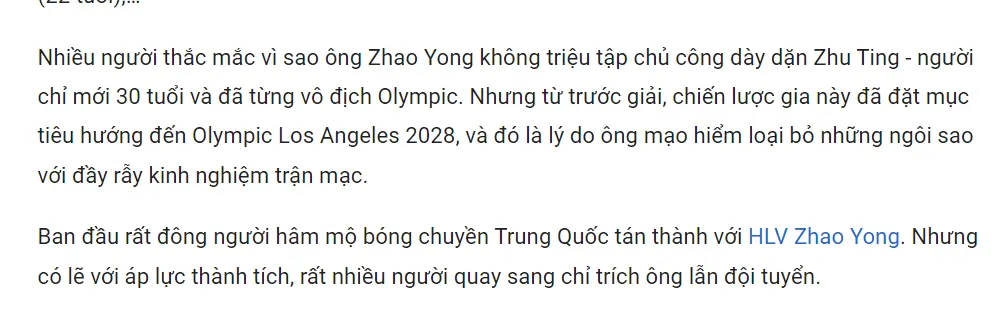赵勇教练为什么不征召30岁的朱婷在他们国内也引发了较大的议论,这位排坛顶级球星曾经多次带领中国女排在世界大赛中拿下好成绩,很多中国球迷认为她甚至可以打到2028年洛杉矶奥运会,赵勇不召他等于是冒着巨大的风险,结果赵勇遭到了很多中国球迷的炮轰。(朱婷这个点也是在过渡阶段里)