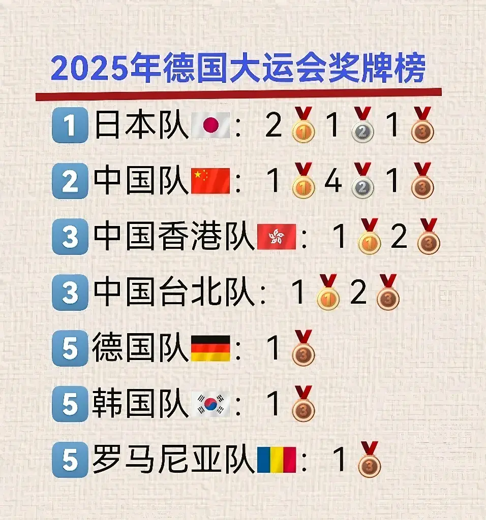 截至目前,大运会乒乓球奖牌榜上,日本队以2金1银1铜暂居首位,中国队以1金4银1铜位居第二。由于今天的男女单打比赛中,日本选手已经全部出局,无缘争夺奖牌,所以,国乒只要能再拿到1个冠军,就将反超日本队,成为总成绩榜第一。