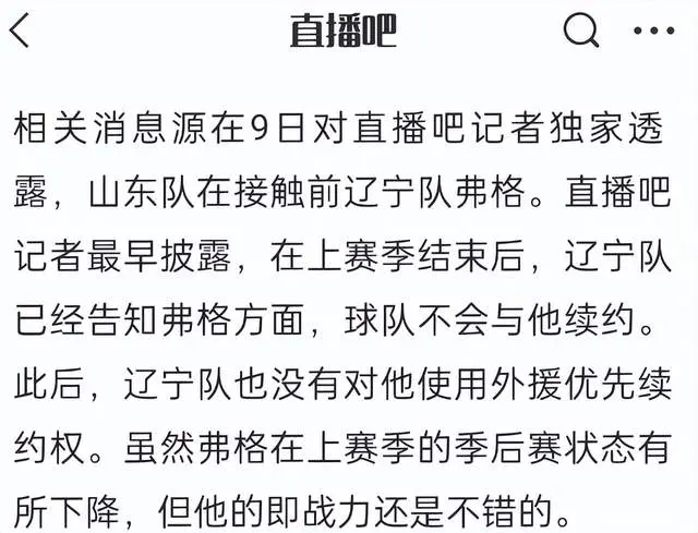 所以传闻山东男篮和弗格接触的时候,球迷表达了不满,毕竟上赛季弗格状态下滑很严重,这也是被辽宁男篮放弃的原因。